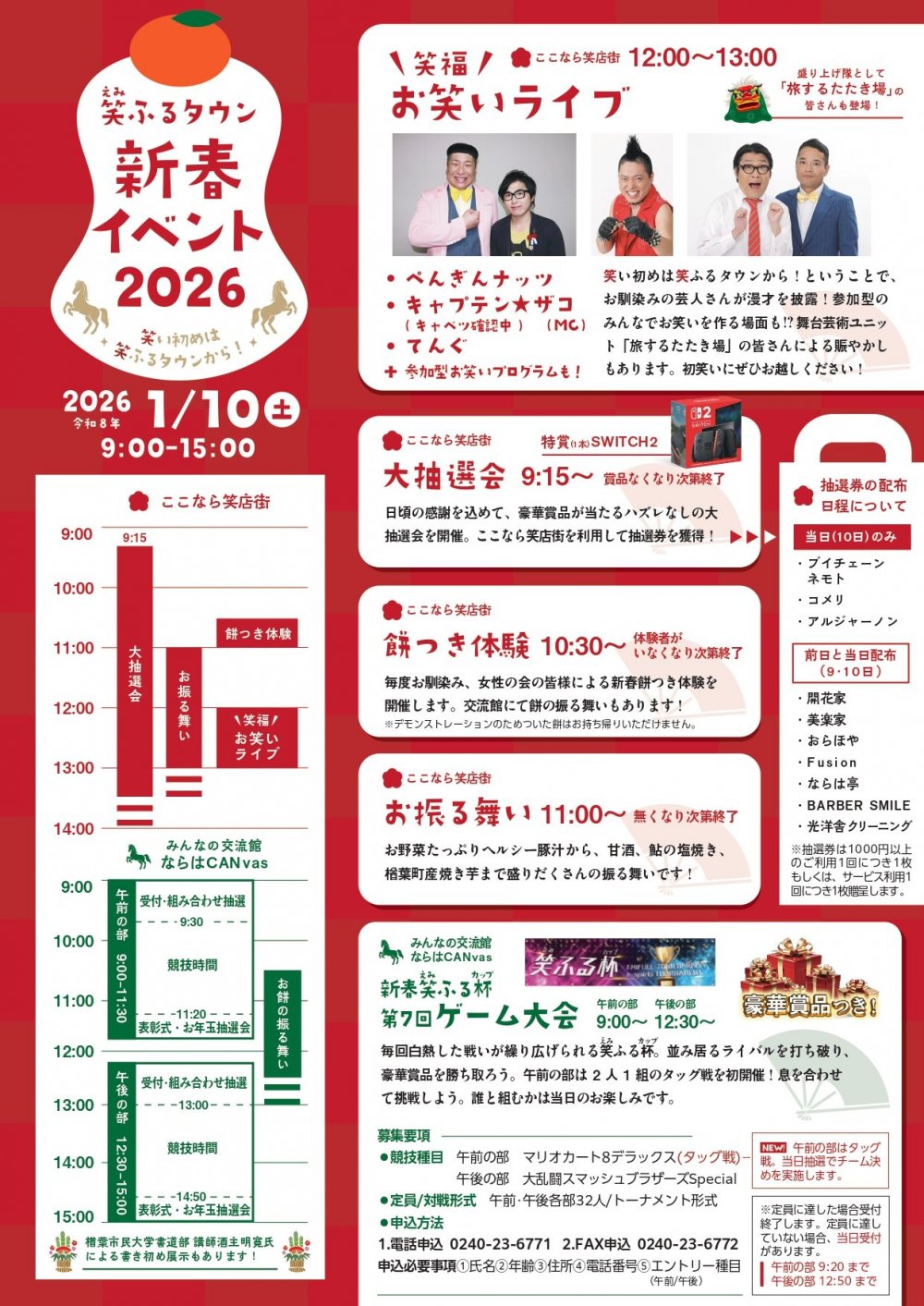 2026年1月10日(土)の9:00から15:00、ここなら笑店街中央広場と交流館を会場に、今年も新春イベントを開催します!