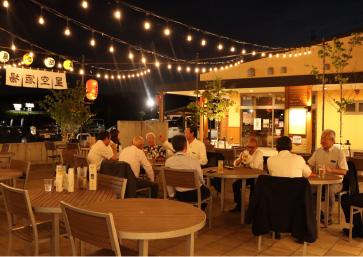 ここなら笑店街中央広場に”外飲み”ができる会場を設営します!テナント各店舗より購入した美味しいお酒やおつまみを、星空の下で楽しむことができます。